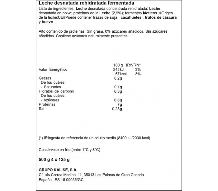 YOGUR NATURAL PROTEÍNA KALISE PACK 4X125 GR.
