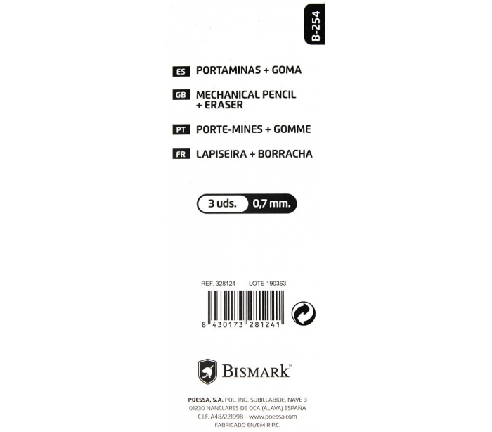 PORTAMINAS CON GOMA 0,7 MM. BISMARK 3 UN.