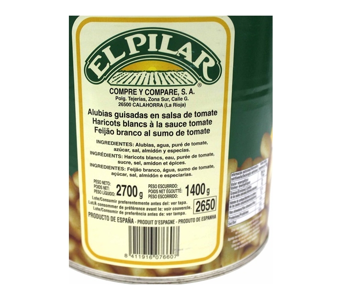 ALUBIA GUISADA SALSA TOMATE EL PILAR 1.400 GR.