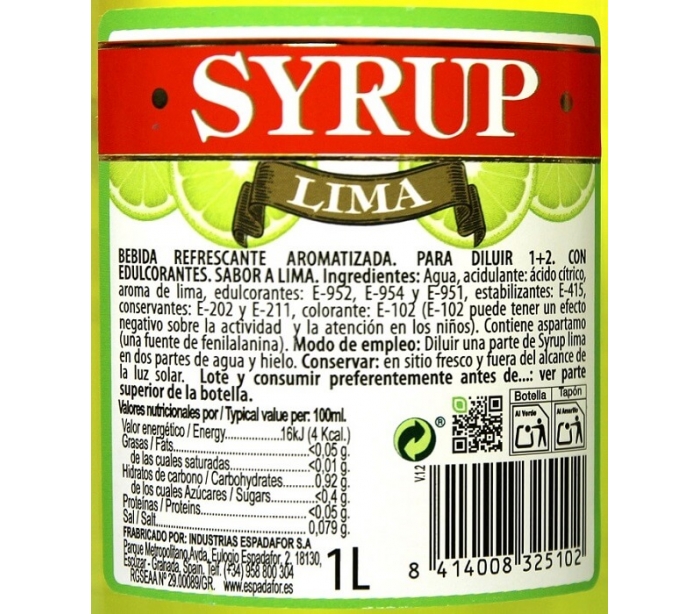 LICOR SIN ALCOHOL LIMA SYRUP 1 L.