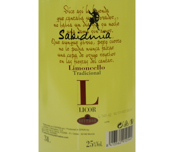 LICOR LIMONCELLO TRADICIONAL SABIDURIA 3 L.PET