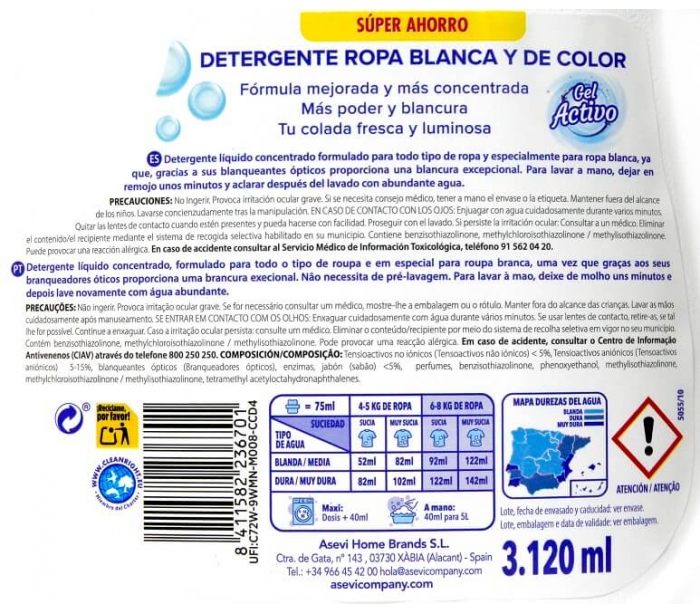 DETERGENTE LÍQUIDO GEL ACTIVO ASEVI 56 LAVADOS.