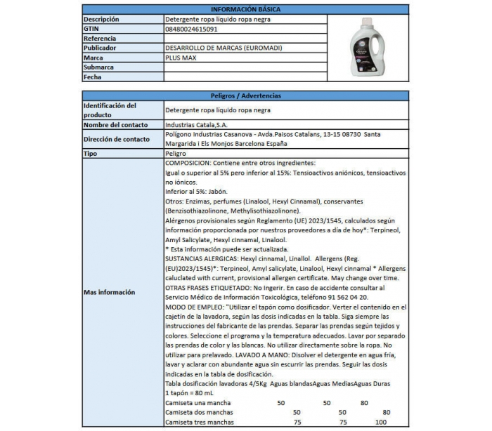 DETERGENTE LÍQUIDO ROPA OSCURA PLUSMAX 1,5 L.