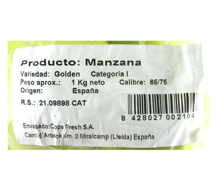 FRUTERIA ENVASADA MANZANA GOLDEN COPA FRESH 1.000 GR.
