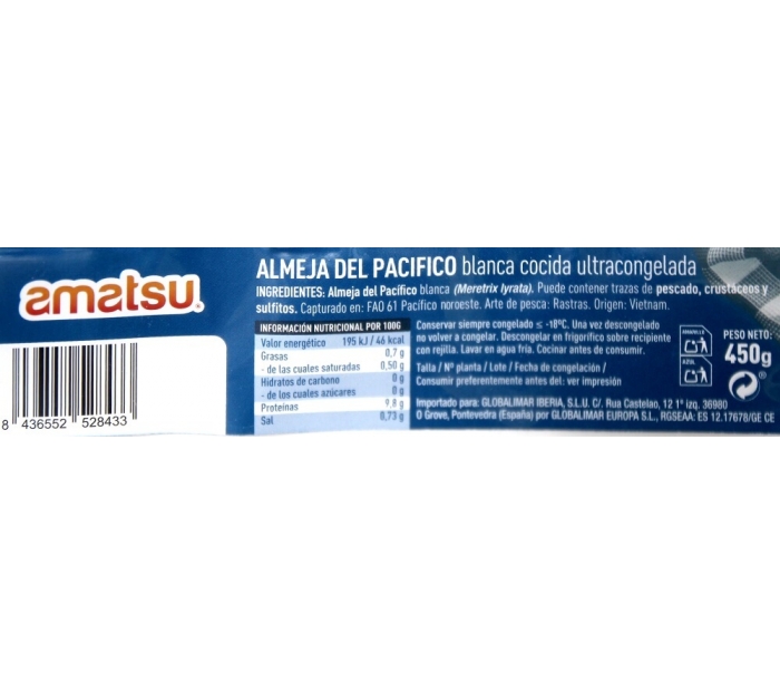 ALMEJA BLANCA 60-80 COCIDA . 450 GR.