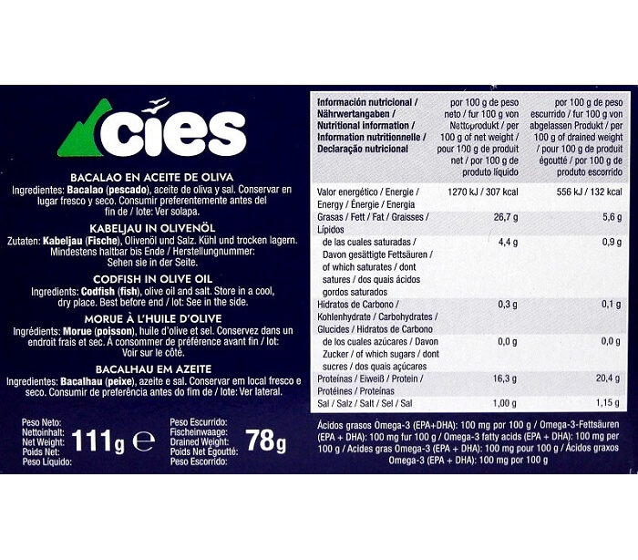 BACALAO ACEITE OLIVA CIES 78 GR.