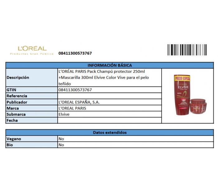 MASCARILLA COLOR VIVE+CHAMPÚ ELVIVE 290+250 ML