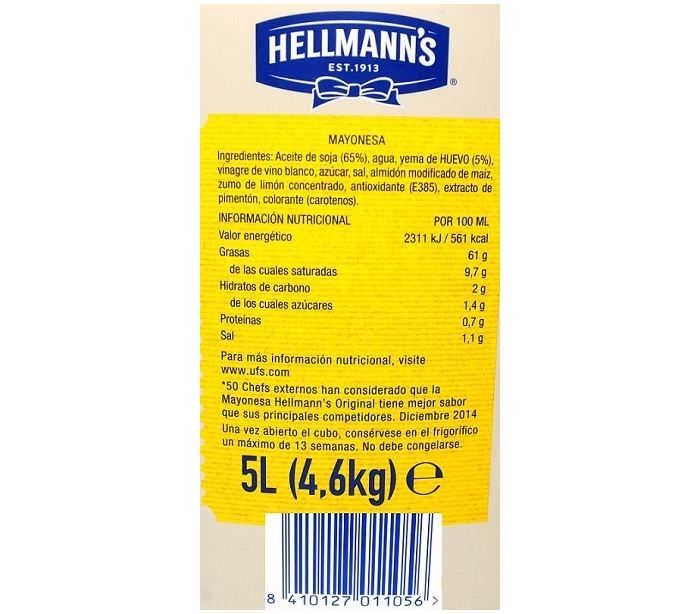 MAYONESA ORIGINAL HELLMANNS 5 L.
