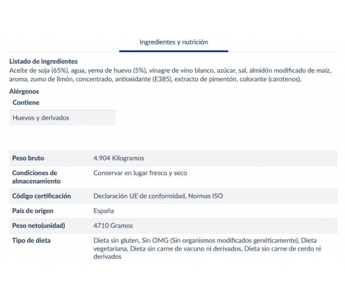 MAYONESA PROFESSIONAL HELLMANNS 5 L.