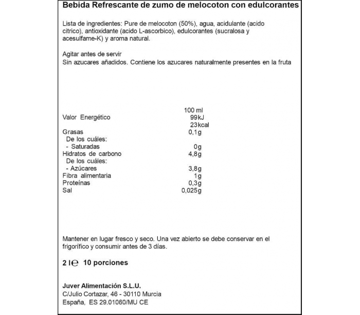 CaracterísticaSIN AZUCAR AÑADIDOS