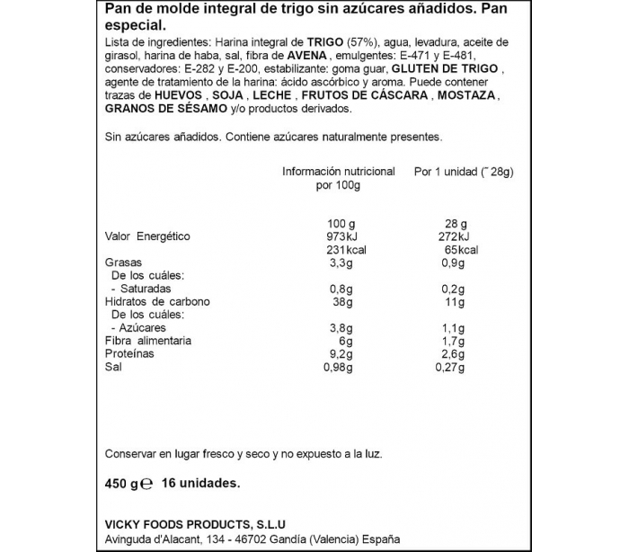 PAN MOLDE INTEGRAL SIN CORTEZA DULCESOL 450 GR.