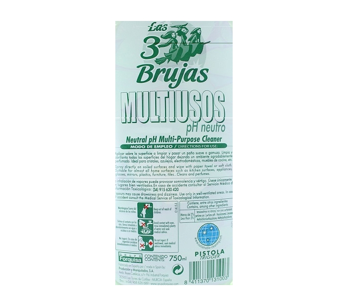 MULTIUSOS PH NEUTRO PISTOLA LAS 3 BRUJAS 750 ML.