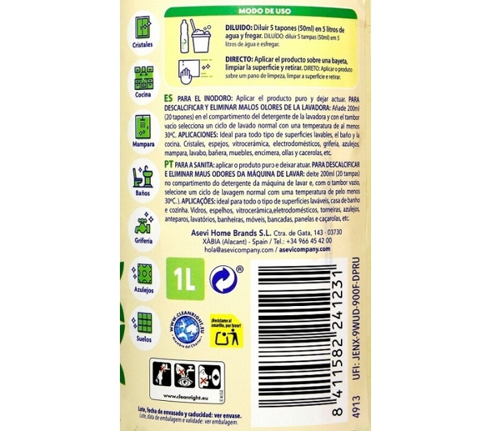VINAGRE LIMPIEZA LIMPIAHOGAR LIMÓN ASEVI 1 L.