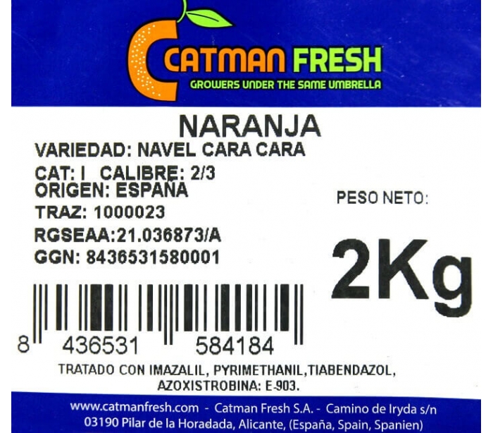 FRUTERIA ENVASADA NARANJA ROJA NAVEL V-CARA CARA CATMAN FRESH 2.000 GR.