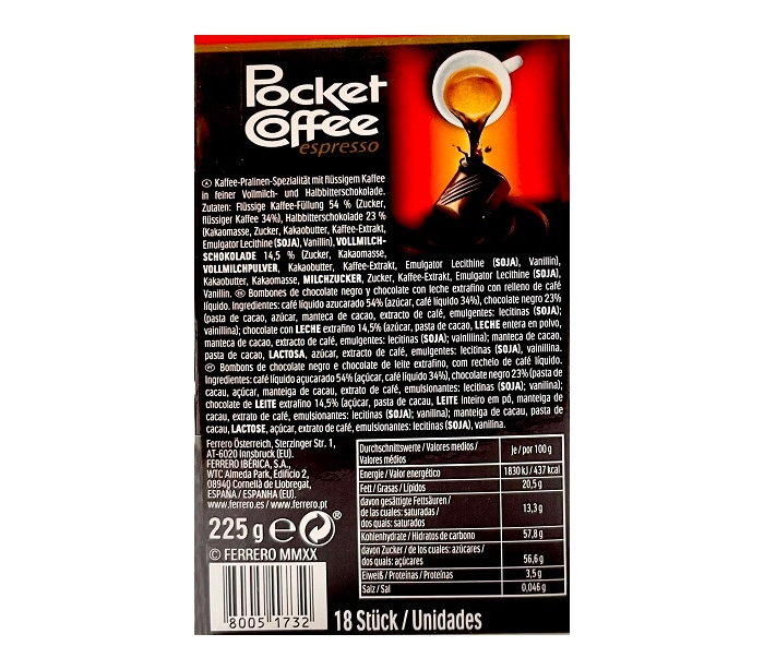 BOMBONES POCKET COFFEE ESPRESSO FERRERO PACK 18X12,5 GRS.