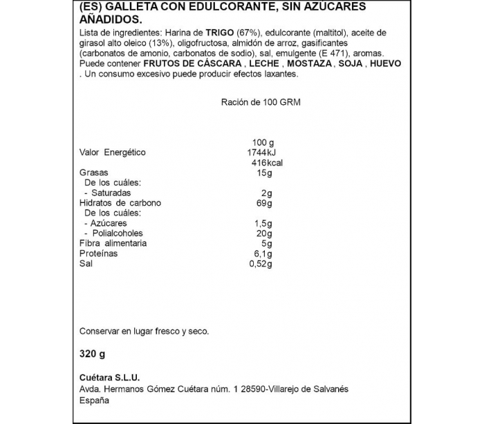 GALLETAS CAMPURRIANA 0%AZUCAR CUETARA 320 GR.