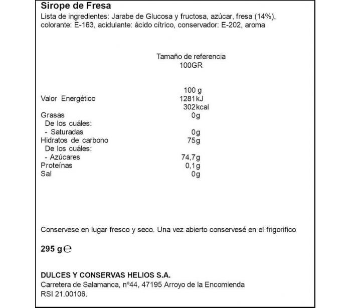 SIROPE FRESA ANTIGOTEO HELIOS 295 GR.