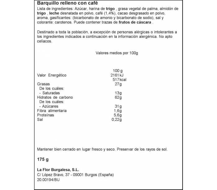 GALLETA WAFER CAFE ESPRESSO FORTALEZA FLORBÚ GOURMET 150 GR.