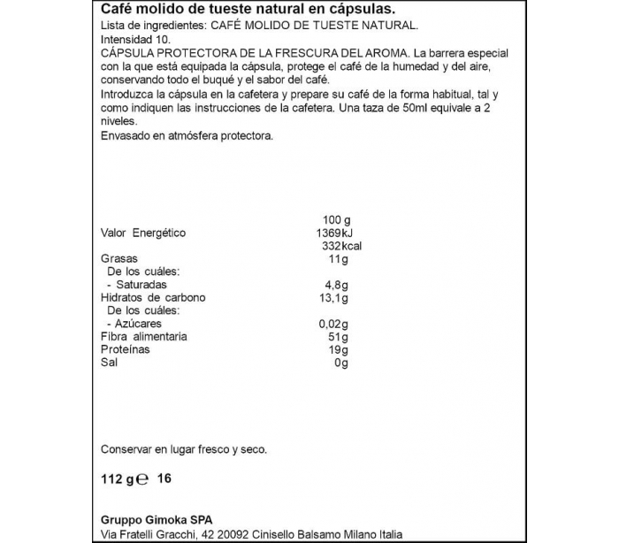 CAFÉ CÁPSULA ESPRESSO EXTRA INTENSO ALTEZA 112 GR.16 CAPSULAS
