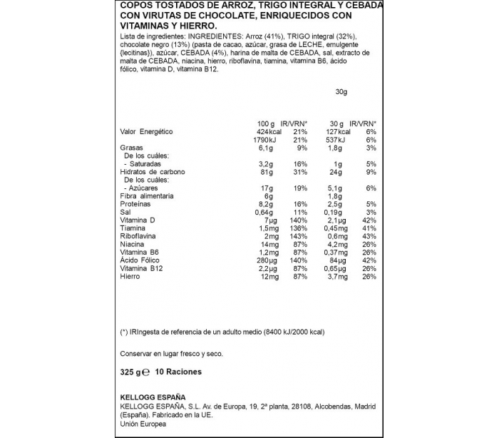 CEREALES DARK CHOCOLATE KELLOGS 325 GR.