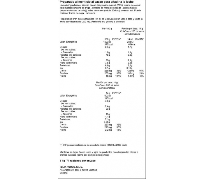 | Marca | COLA CAO |