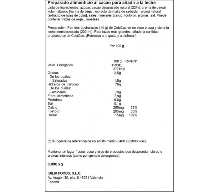 | Marca | COLA CAO |