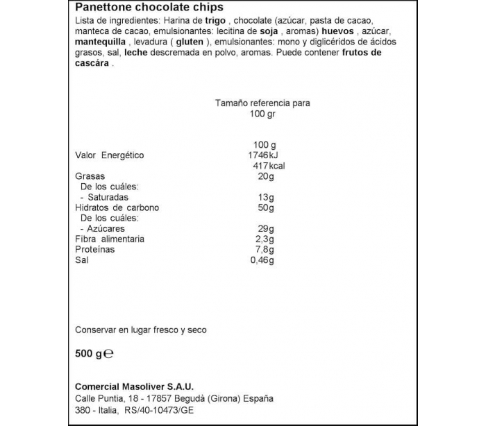 PANETTONE CHOCOLATE CHIPS BAULI 500 GR.