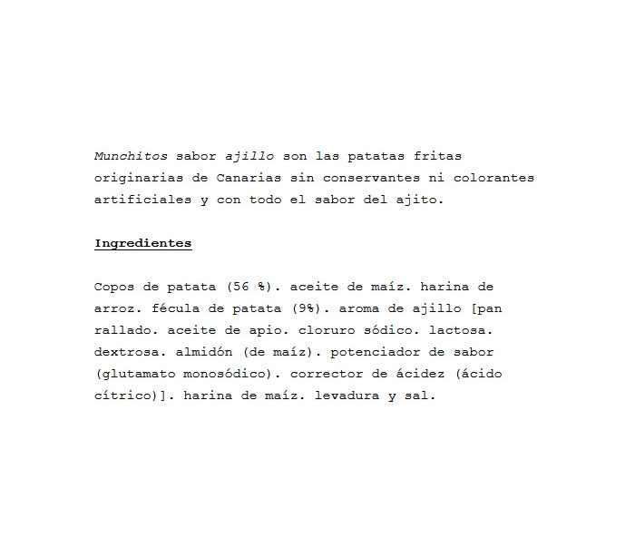 PAPAS FRITAS AJILLO MUNCHITOS 160 GRS.
