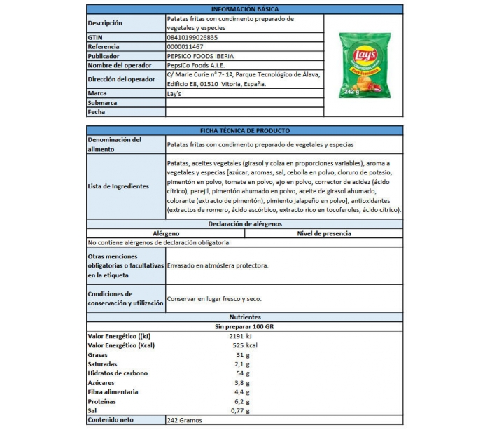 PAPAS FRITAS SABOR CAMPESINAS LAYS 242 GR.