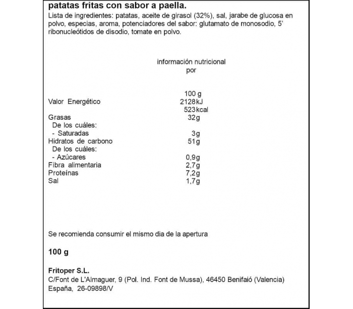 PAPAS FRITAS PAPEO TERRETA FRITOS PEREZ 100 GR.