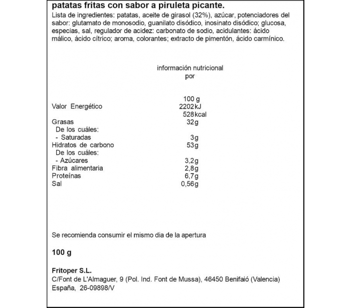 PAPAS FRITAS PAPEO FIESTA FRITOS PEREZ 100 GR.