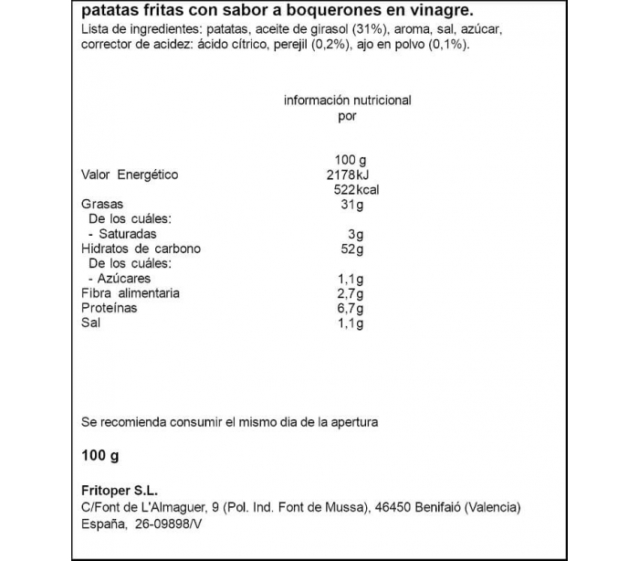 PAPAS FRITAS PAPEO TAPEO FRITOS PEREZ 100 GR.