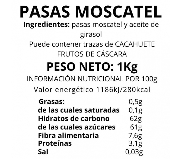 PASAS MOSCATEL SIN HUESO CASA RICARDO 1.000 GR.