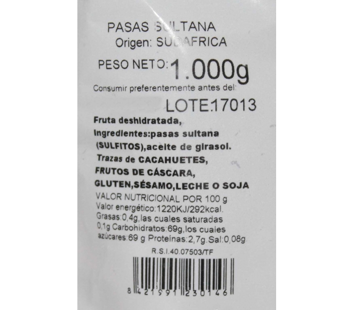 PASAS SULTANAS CASA RICARDO 1.000 GR.
