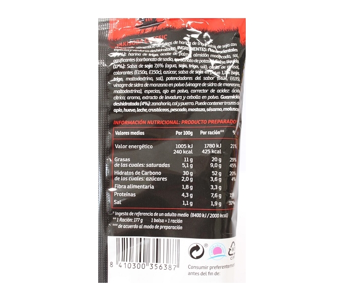 FIDEOS ORIENTALES CLASICOS YAKISOBA 93 GR.SOBRE