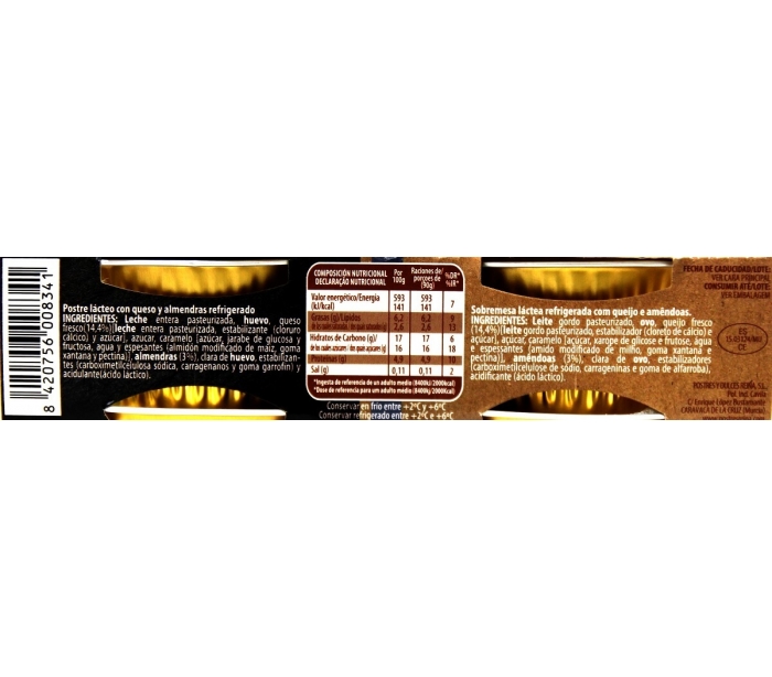FLAN QUESO CON ALMENDRAS REINA PACK 4X100 GR.