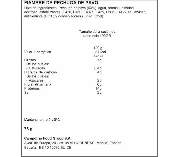 PAVO PECHUGA CAMPOFRIO 70 GR.