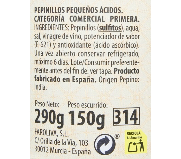 PEPINILLO PEQUEÑO ÁCIDO EL PICARO 150 GR.