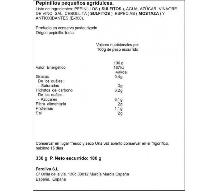 PEPINILLO AGRIDULCE ALTEZA 190 GR.