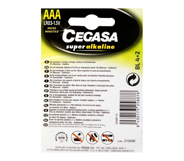 PILA ALCALINA AAA CEGASA 4+2 UN.GRATIS