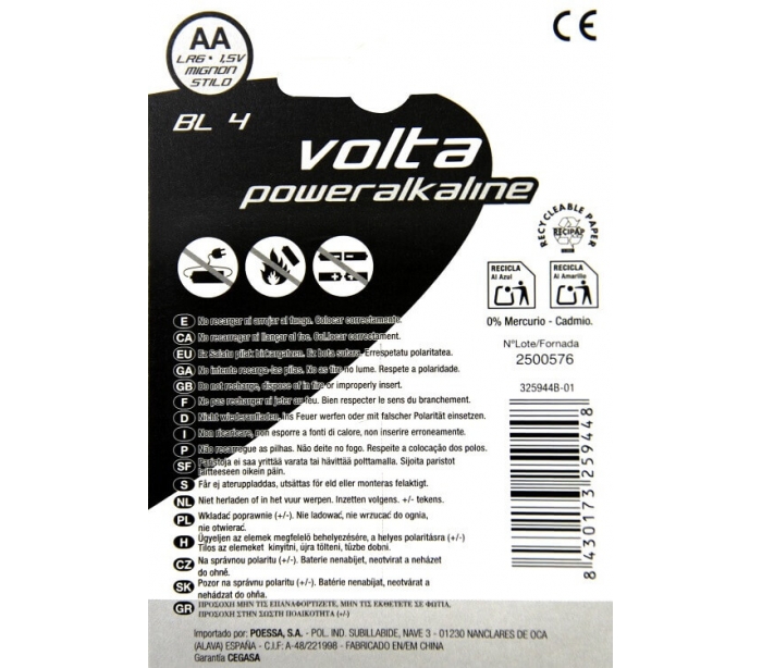 PILA ALKALINA LR06 1,5V. VOLTA 4 UN.