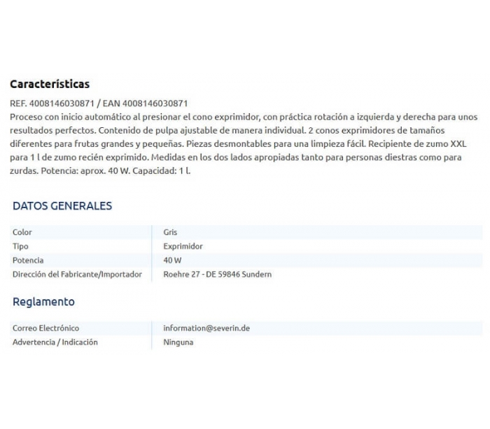 EXPRIMIDOR 40 W. SEVERIN 1 UN.