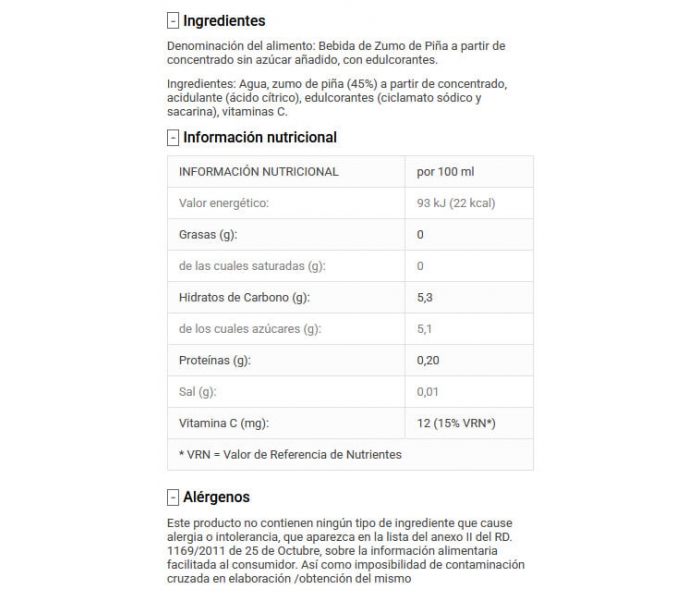CaracterísticaSIN AZÚCAR AÑADIDO