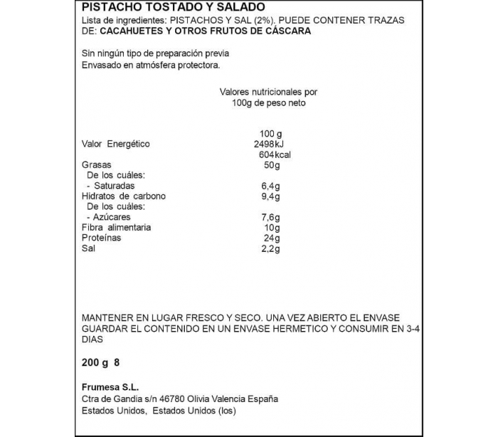 PISTACHO TOSTADO AGUASAL ALTEZA 200 GR.