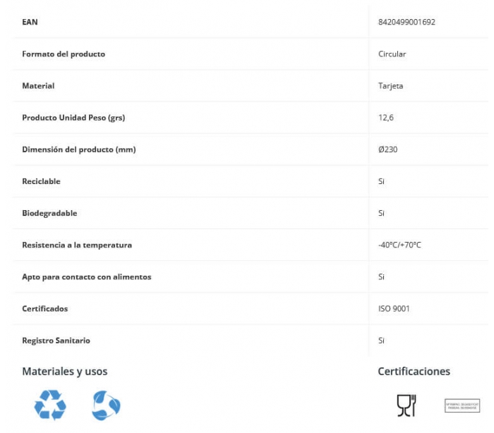 PLATO PASTELERIA 23 CM. . 100 UN.