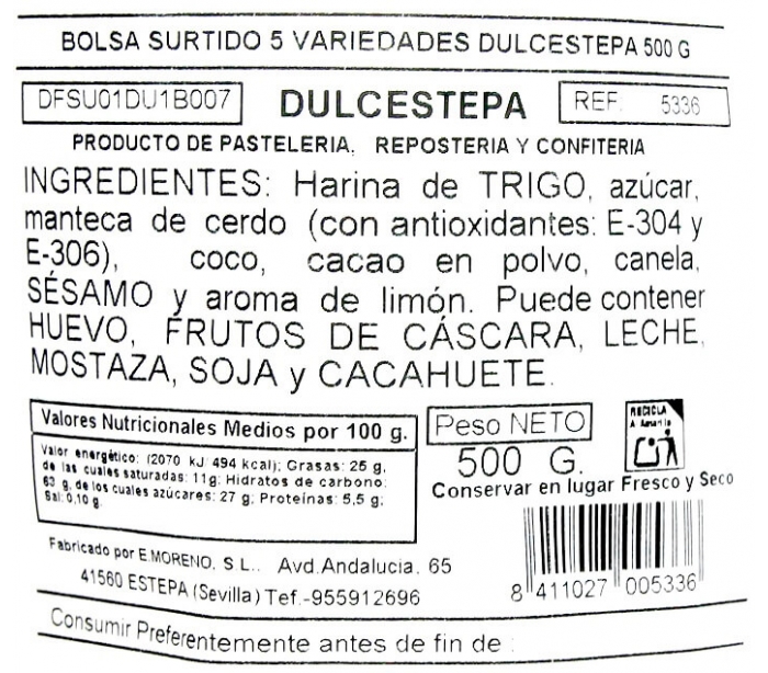 POLVORON SURTIDO DULCESTEPA 500 GR.BOLSA