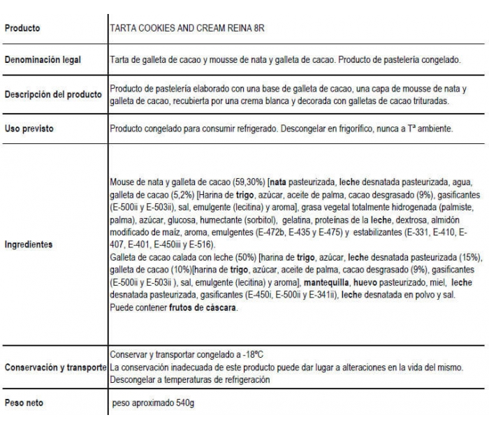 TARTA COOKIES&CREAM REINA 540 GR.