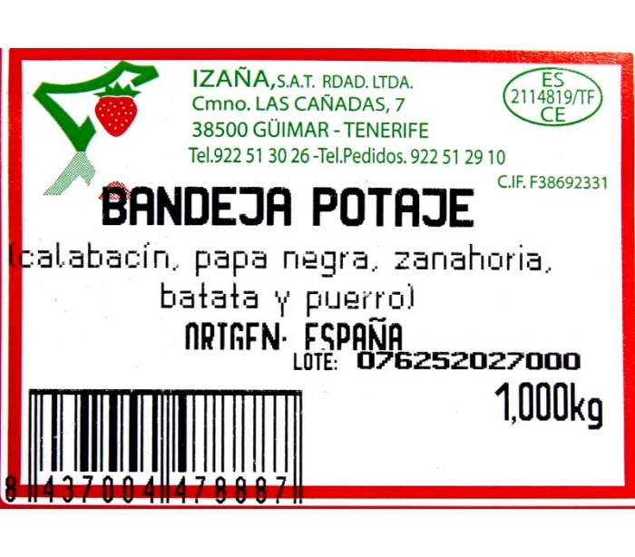 VERDURA ENVASADA VERDURA POTAJE IZAÑA 1.000 GR.