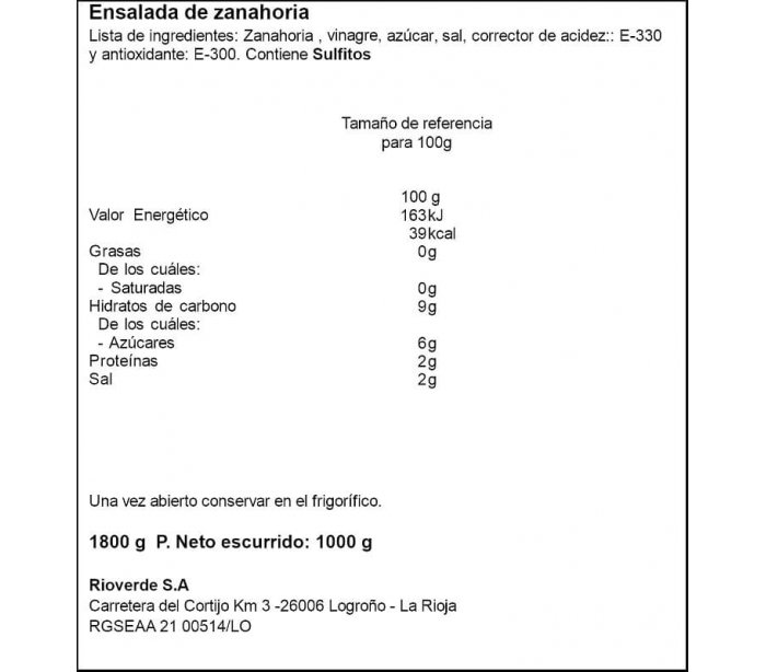 ZANAHORIA RALLADA RIOVERDE 1 KG.