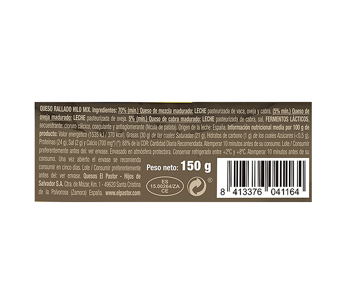 QUESO RALLADO MIX EL PASTOR 150 GR.